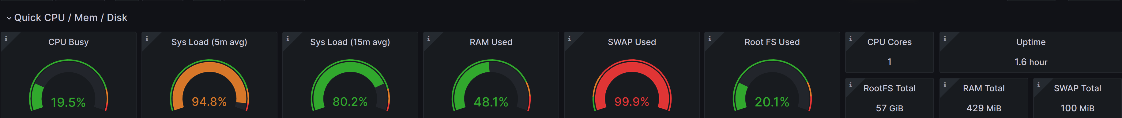 Для начала прикрутил мониторинг. Очень уже понравилось соотношение $\frac{Результат}{Усилия}$ для связки node-exporter + prometheus + grafana.